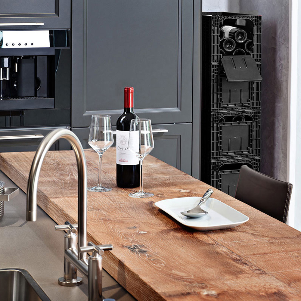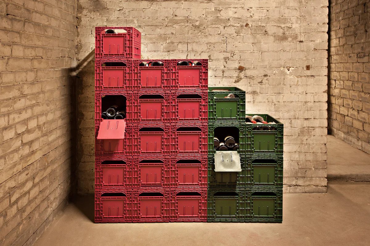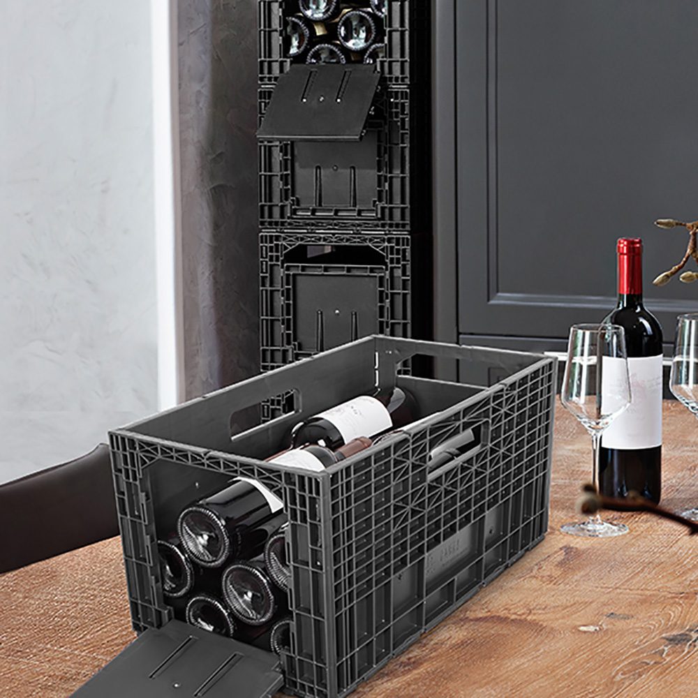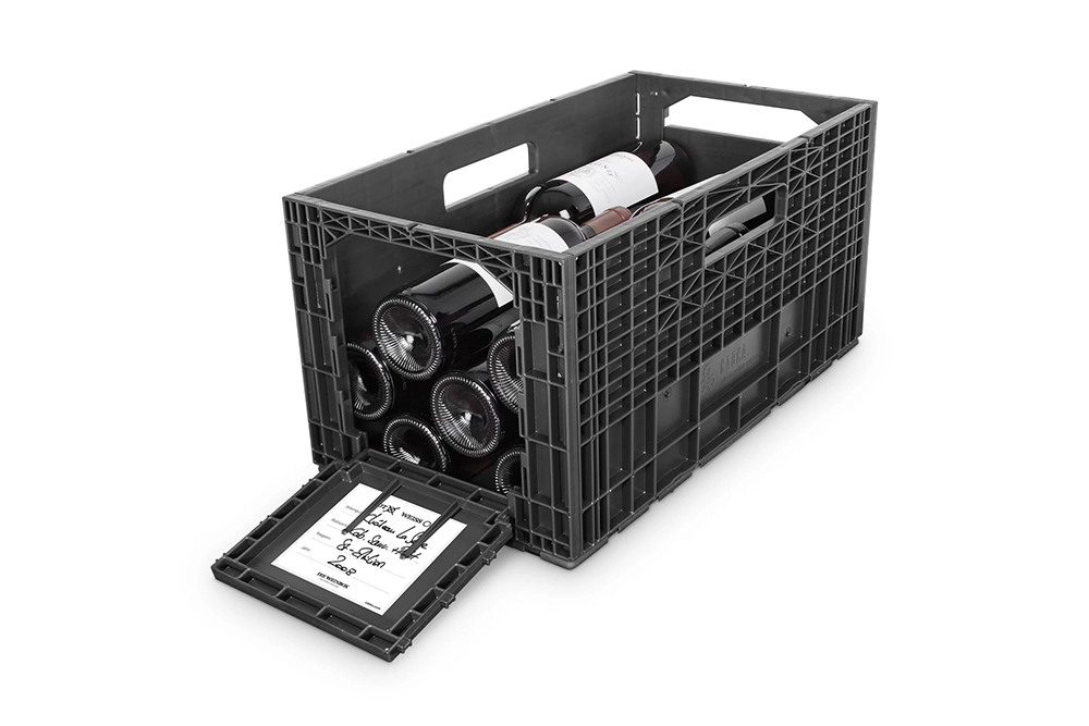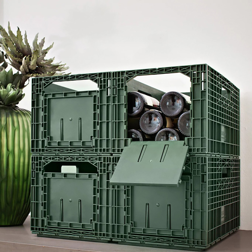Facilitează stivuirea mai multor cutii într-un mod atractiv și funcțional și datorită clemelor de etichetare care se află pe clapeta mare de deschidere, asigură ordonarea și vizibilitatea sticlelor. Când se golește lada, pereții pot fi pliați, permițând astfel o modalitate convenabilă de a o depozita și transporta.